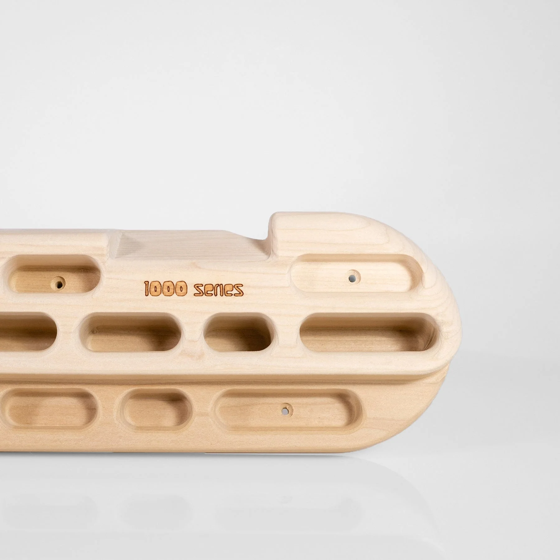 The Beastmaker 1000 hangboard has been ergonomically designed for the hands of those who are a bit newer to climbing and training but want to progress quickly. This board is suitable for those climbing from 5a all the way to 7c or even further if you fancy taking on some one armed deadhangs. The dirty 45 degree slopers and monos which are apparent on the Beastmaker 2000 have been removed to make way for some jugs and more variation of the pocket depths. The Beastmaker 1000 is made from wood with a very fine texture which is very kind to your skin and the holds have been radiused to avoid tweaking any fingers.